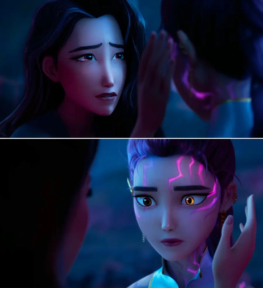 Here, the stakes rise even higher—Jinu’s very soul and redemption, and Rumi’s search for her own truth. Together they embody what love should be: seeing and accepting someone as they truly are. Watching their bond shift from contempt to curiosity to compassion—and, well, you know what comes next—is deeply satisfying.